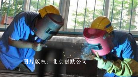 圖(1)焊接性能檢測(cè)中心,技術(shù)工程師正在認(rèn)真檢測(cè)